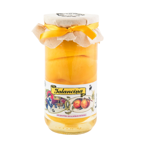 Melocotón en almíbar mitades. Fruta 100% natural procedente de La Almunia de Doña Godina, en Aragón.